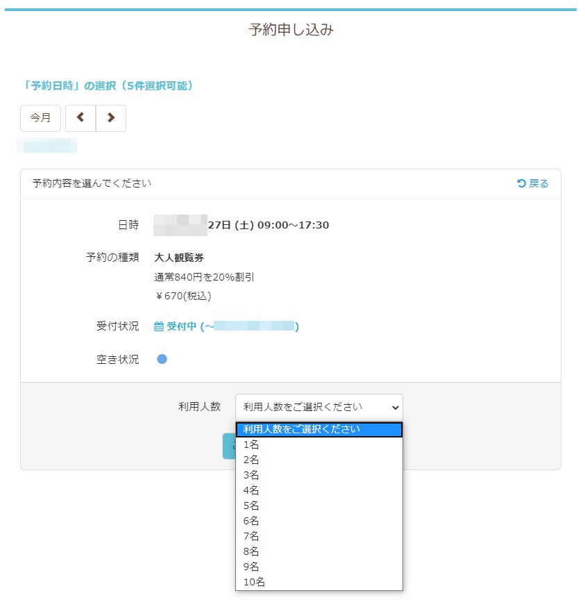 料金やサイズ等が複数ある場合は、その形態ごとに人数の選択をしてください。