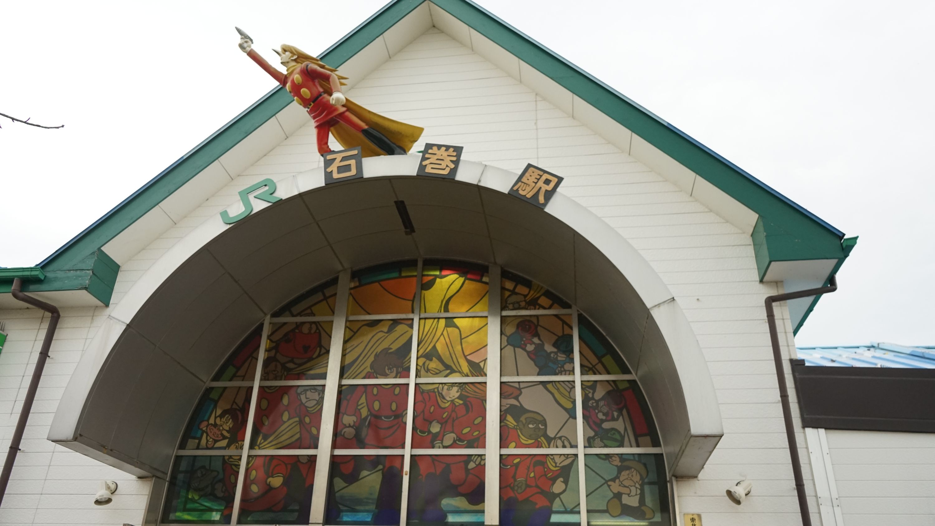 JR石巻駅の駅舎を出て後ろを振り返ると、いきなり漫画の世界へ引き込まれる