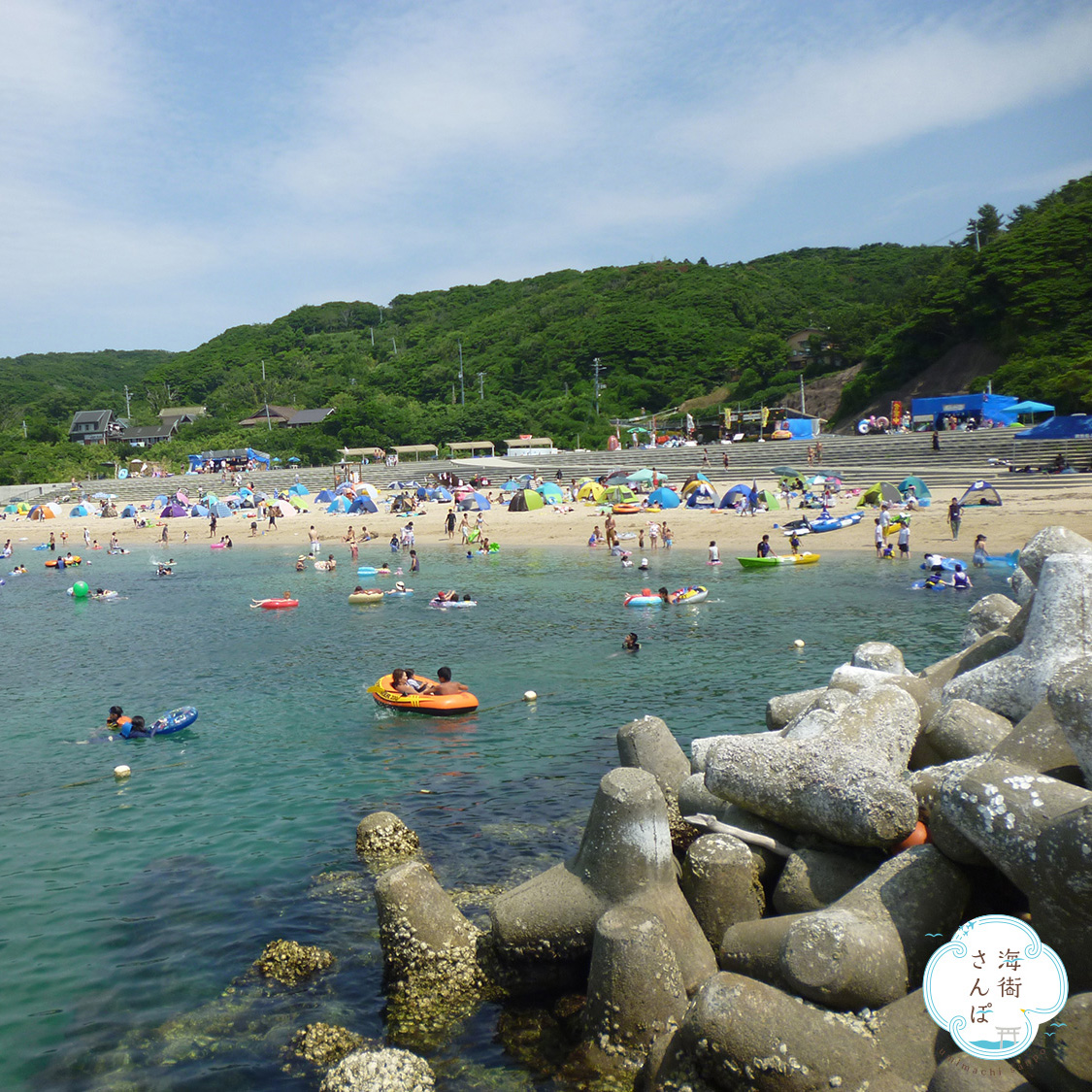 The island has two ports, of which Ajishima-kou includes Shirahama Beach, a particularly popular bathing spot.