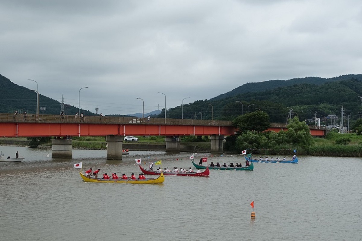 川の幅が広いのであまり迫力は感じられませんでしたが、会社の看板を背負って応援している人たちがいたので、まるでローカルテレビCMを生で見ているような気分になりました。