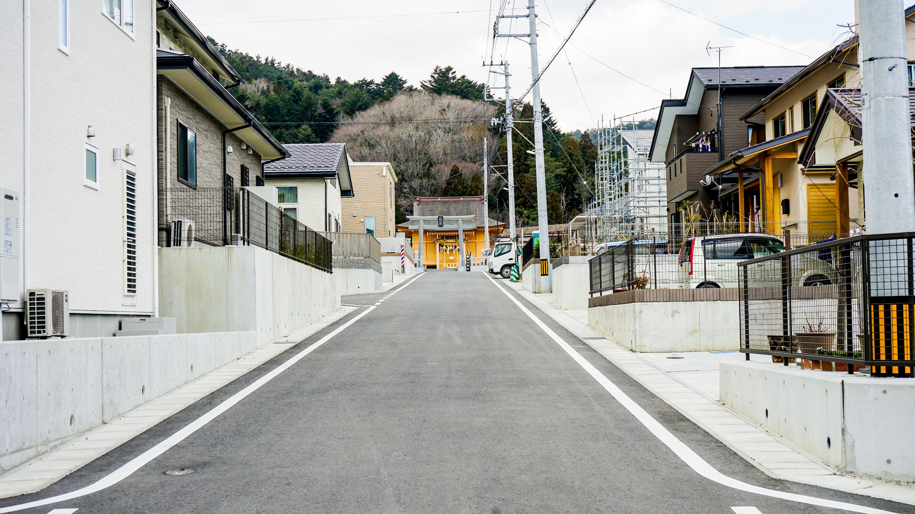 白山神社を遠くに見据える坂。
