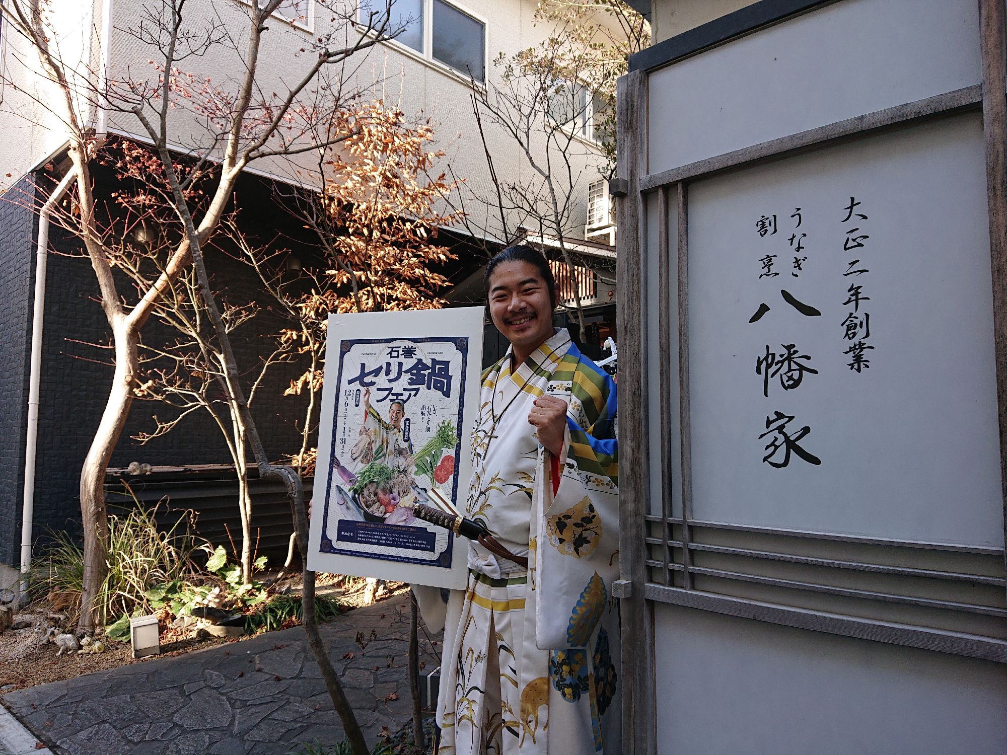 石巻市河北地区の特産品「河北せり」と地元石巻の食材で作る『冬の石巻の新鍋・石巻セリ鍋』をPRするために、石巻セリ鍋フェアのイメージキャラクター・伊達武将隊の支倉常長様にお越しいただきました。