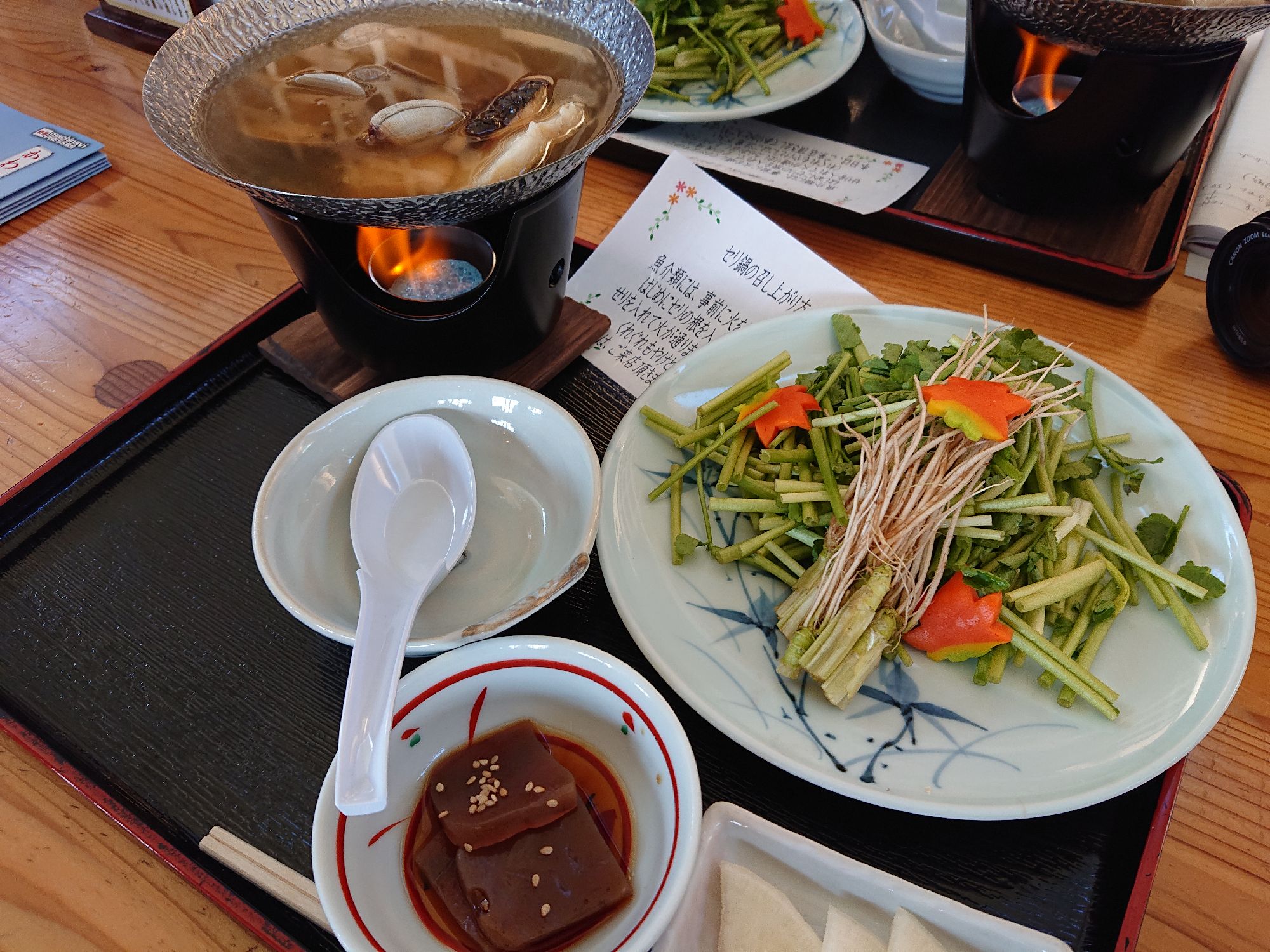 石亭さんのメニューに石巻セリ鍋フェアのチラシを発見!