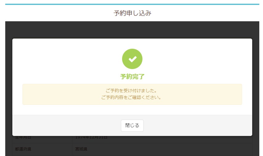 この時、ご注文時と同じ画面が表示されますが、ご予約は確定されていますので、他のページへ移動されても問題ありません。