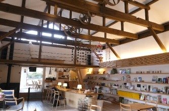 「にぎやかなまちの図書館」を目指してつくられた百俵館。古民家を改装したお洒落な館内にはカフェも併設されており、この場に集う地元の人々との交流も楽しめる。